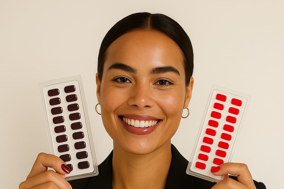 • Tiras de Gel: Depois de limpares bem as unhas, em 20 minutos aplicas sem erros e selas as bordas – tudo sem lâmpada UV ou limar.