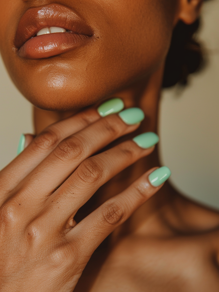- Cura sob lâmpada UV/LED 2 × 60 seg., inclinando ligeiramente a unha para garantir bordas perfeitas.